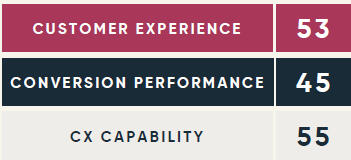 Your customer journey, conversion path, and CX maturity are reviewed across 7 dimensions — using your live site, available performance data, and industry benchmarks. Every Score is analyst-led, not AI-generated.